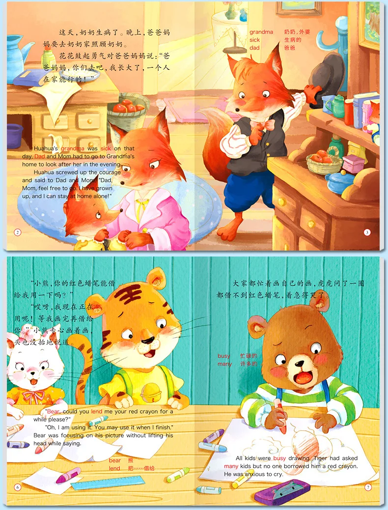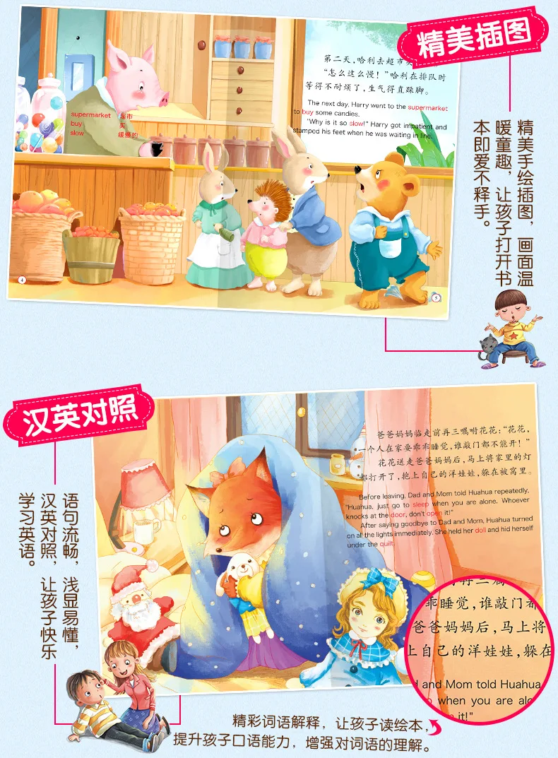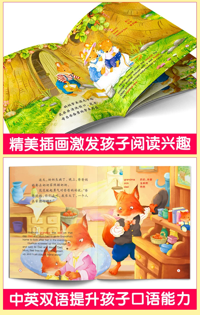 10 Books Parent Child Kids Baby Age 0 to 6 Bedtime Fairy Tale Story English Chinese Bilingual Reading QR Code Audio Picture Book