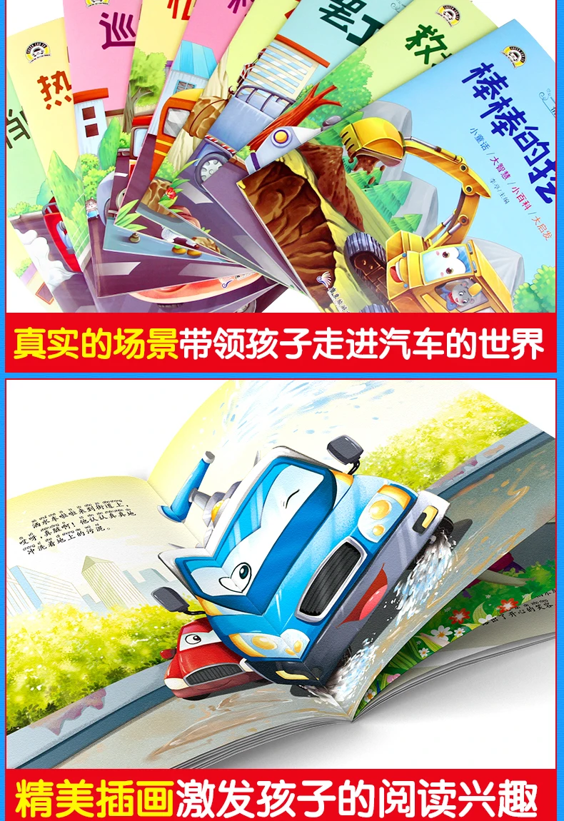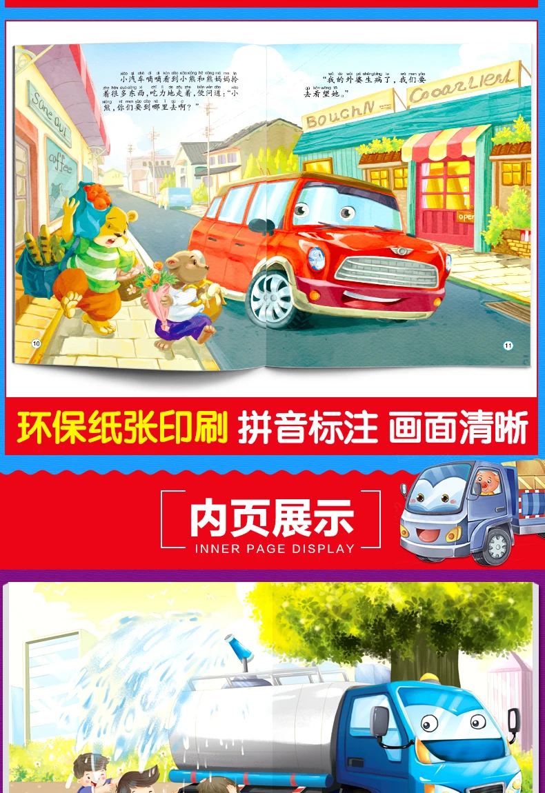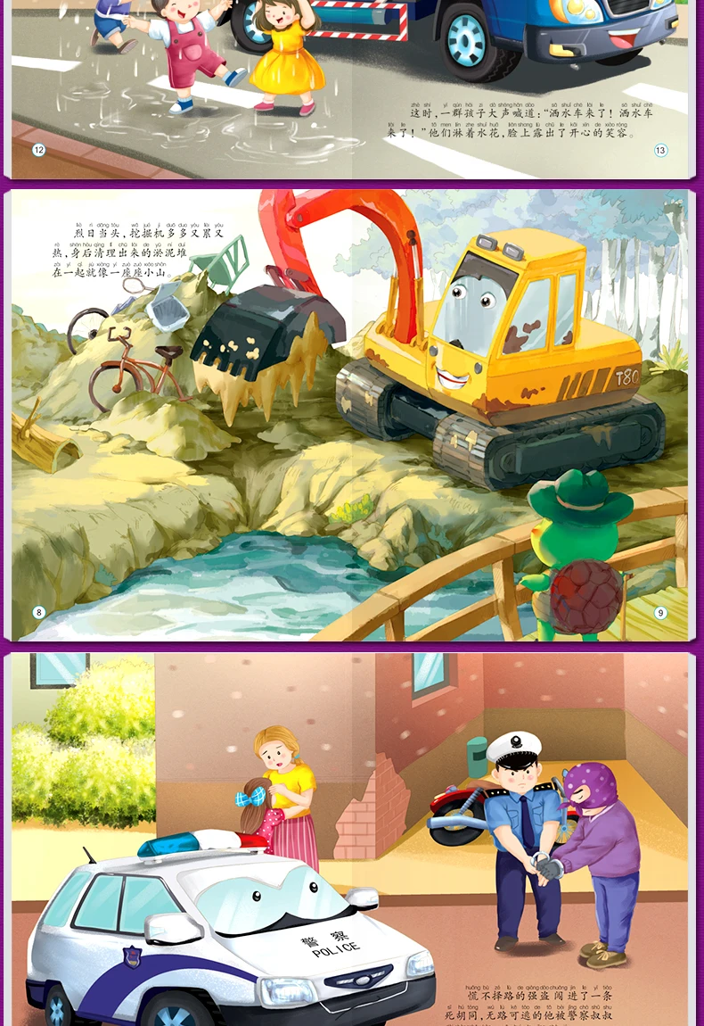 10pcs Tool Car Manga Book Chinese Characters Pinyin Kindergarten Early Education Children Age 2-5 Reading Cartoon Picture Story