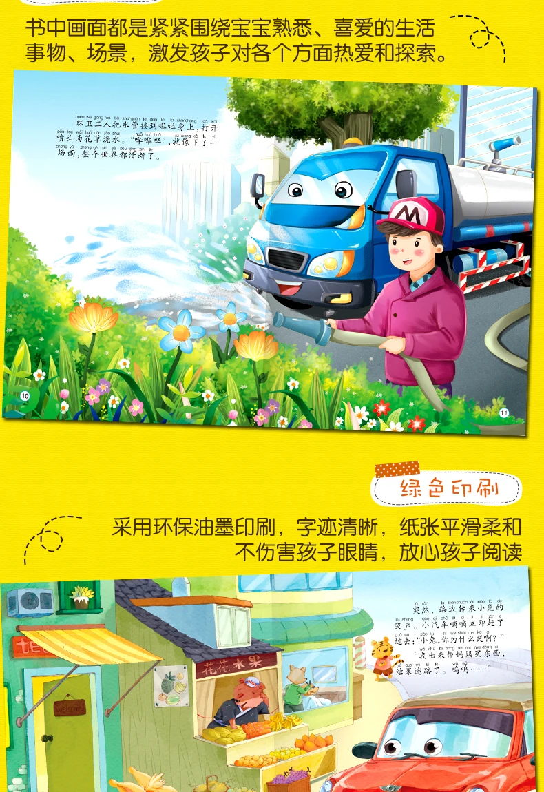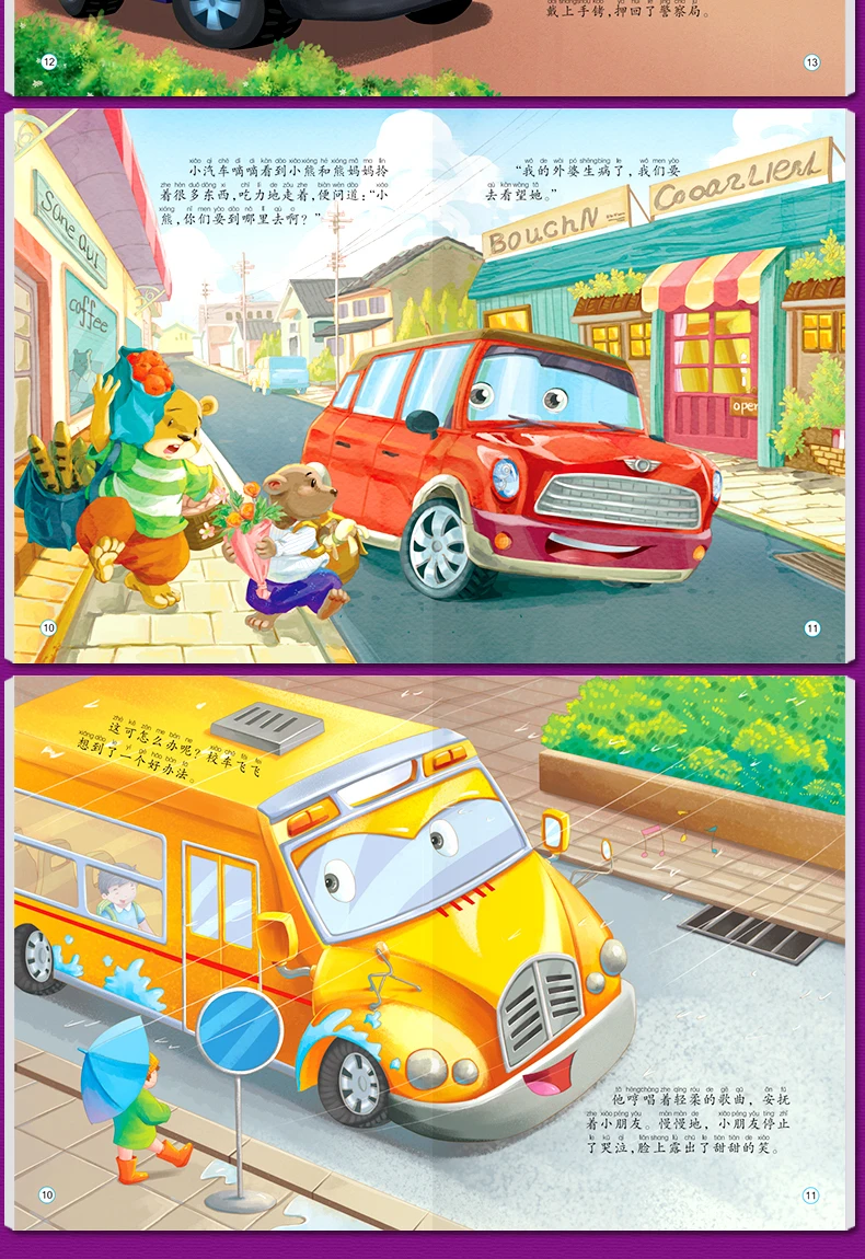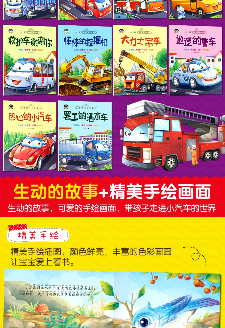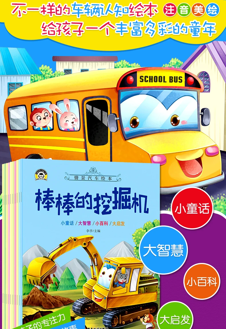 10pcs Tool Car Manga Book Chinese Characters Pinyin Kindergarten Early Education Children Age 2-5 Reading Cartoon Picture Story