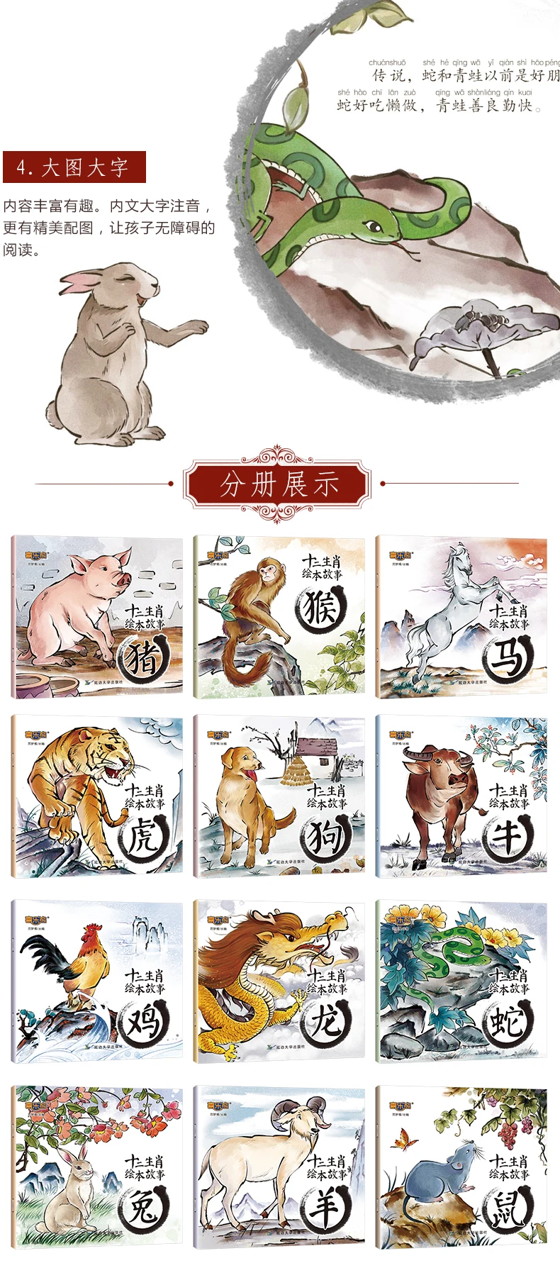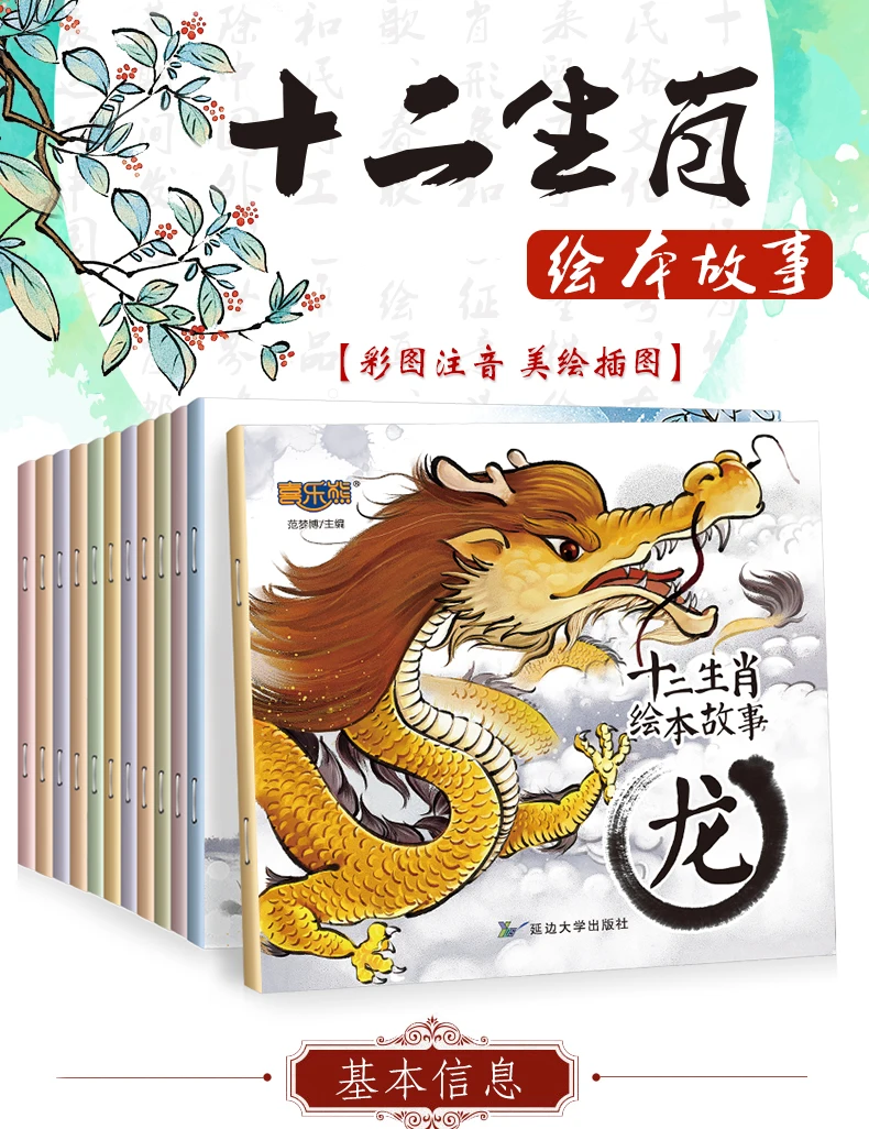 12 Books Parent Child Kids Baby Chinese culture twelve zodiac signs Bedtime Story Chinese PinYin Mandarin Picture Book Age 0 - 6