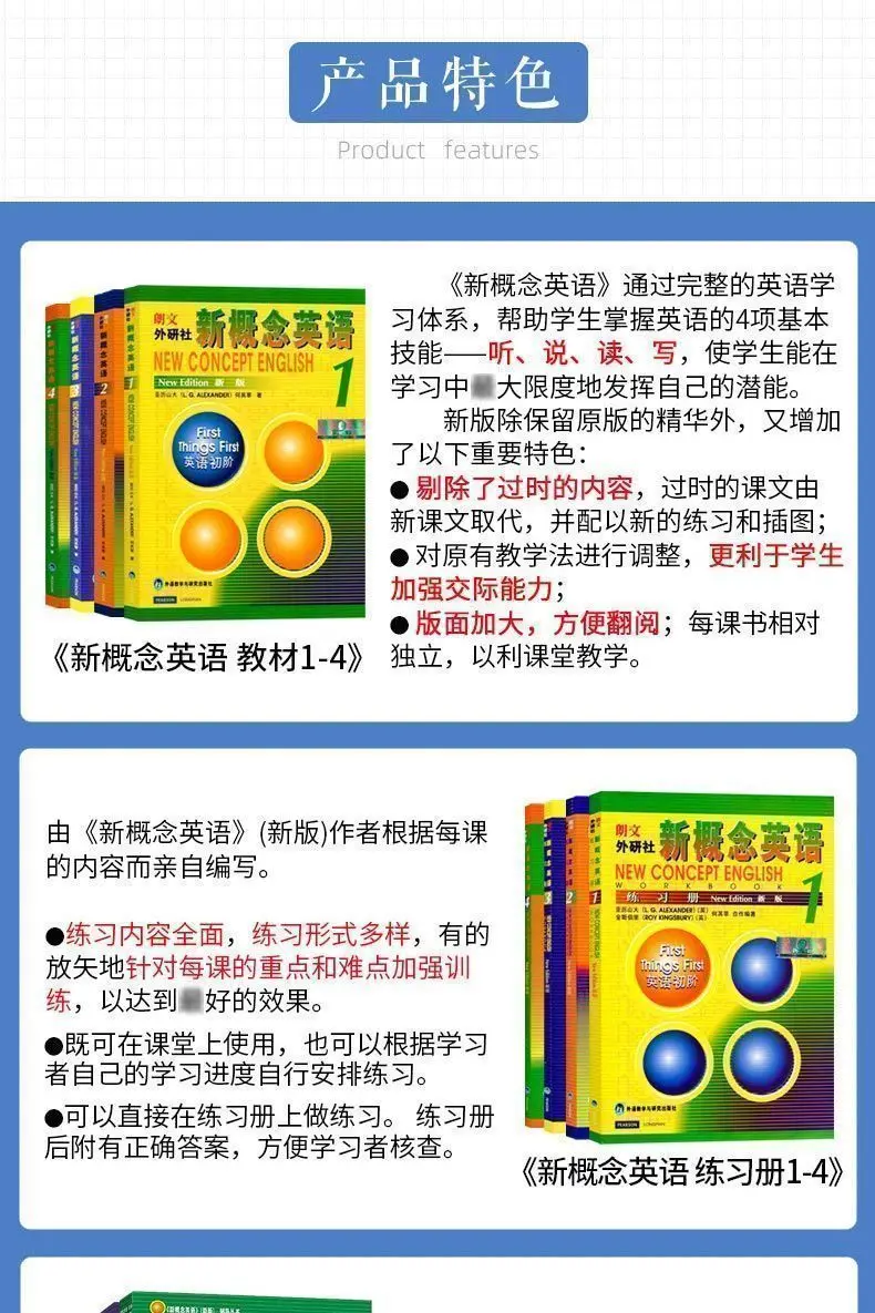 18 Books New Concept English Textbook 1234 Students' Book Workbook Exercises Detailed Self-study Guide Reading Grammar Manual