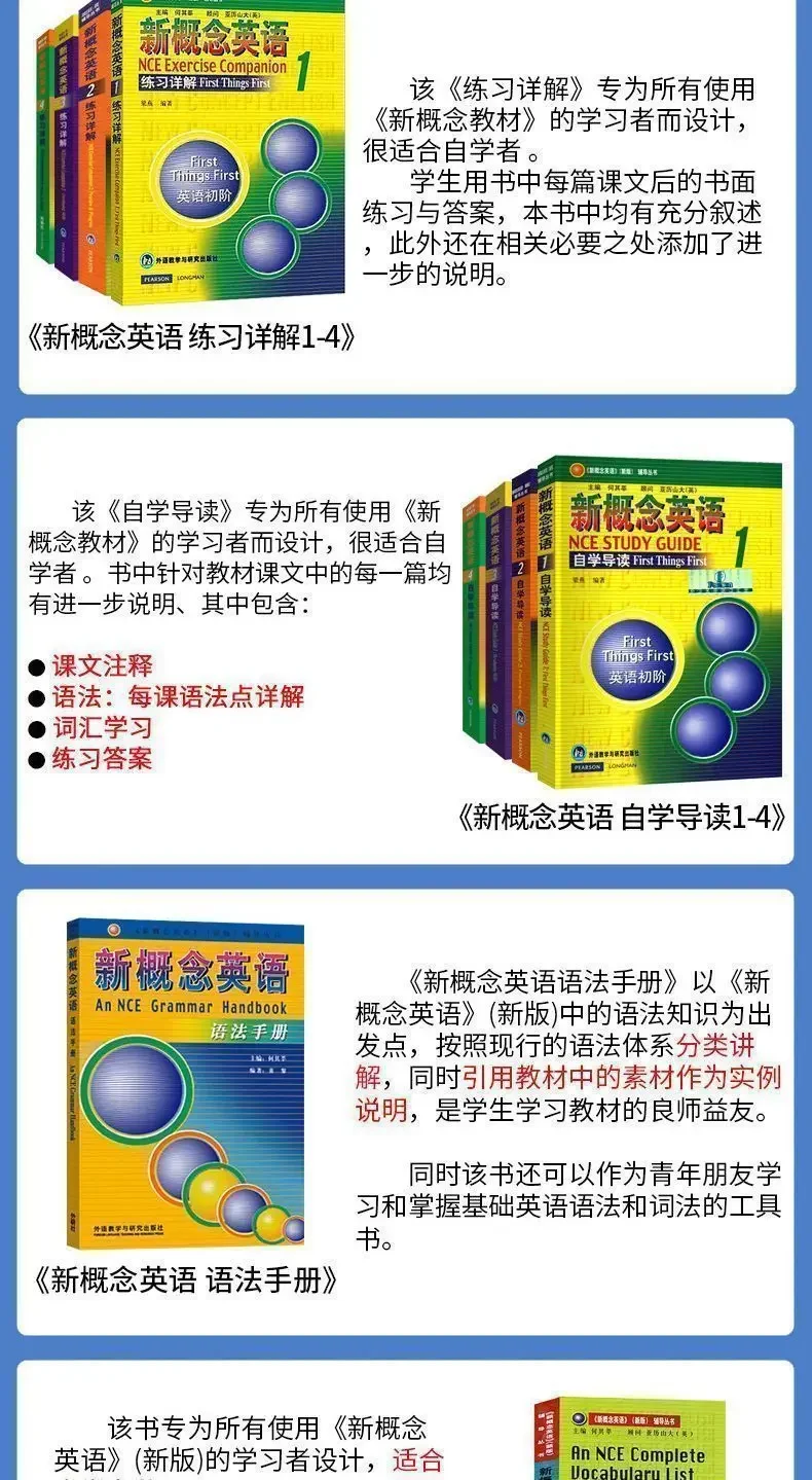18 Books New Concept English Textbook 1234 Students' Book Workbook Exercises Detailed Self-study Guide Reading Grammar Manual
