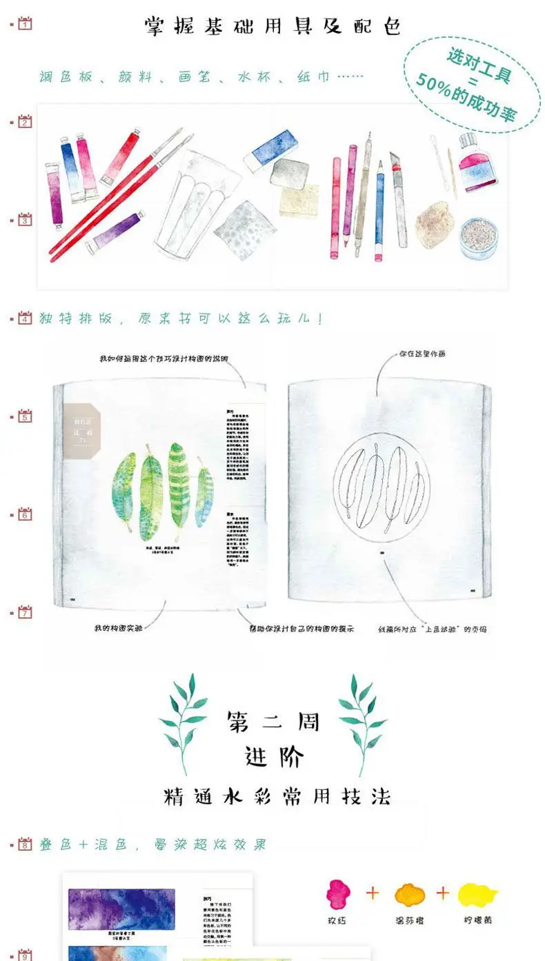 21 Days Learn To Paint in 100 Experiments Watercolor Book Zero Basic Watercolor Drawing Tutorial Book