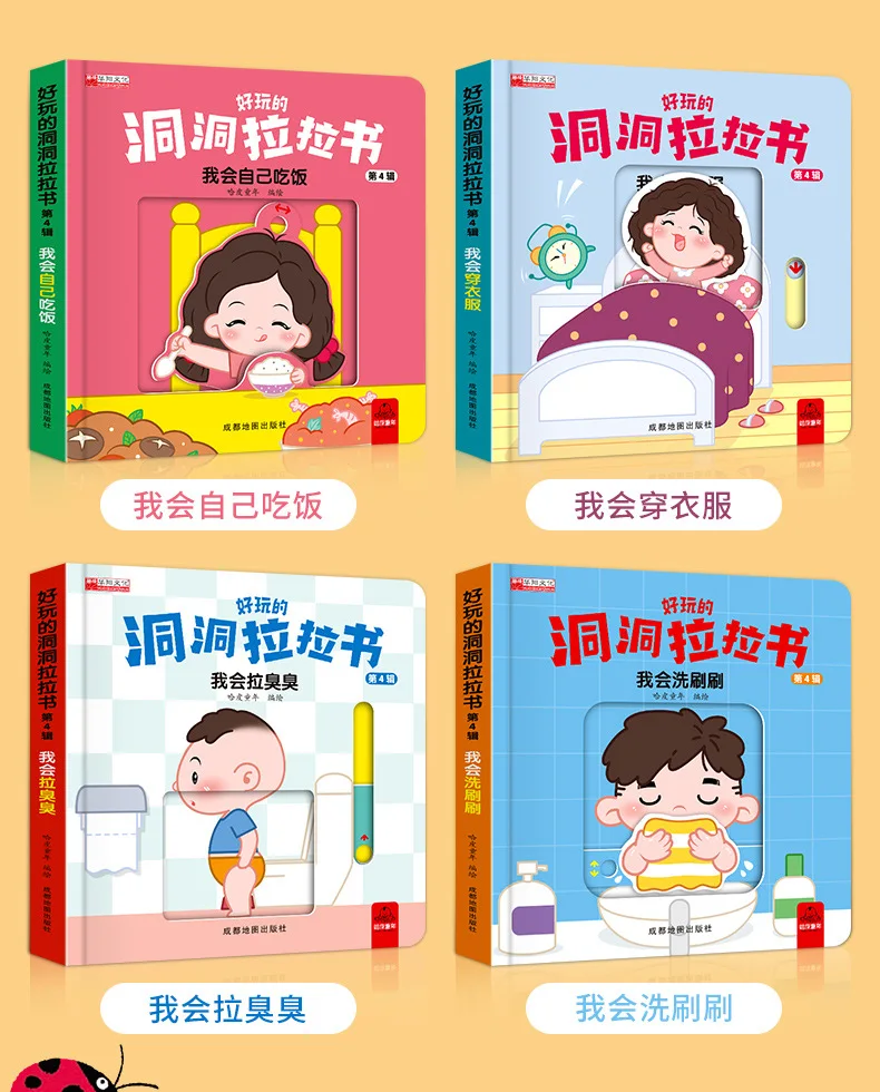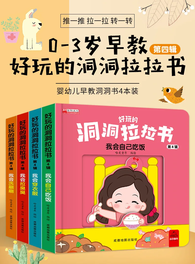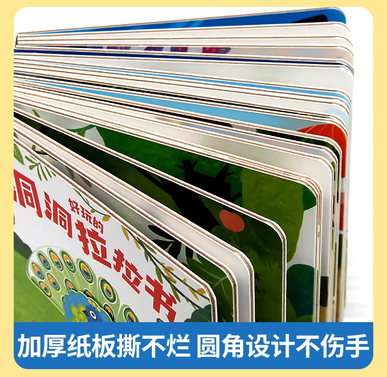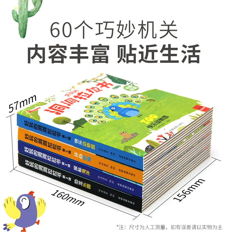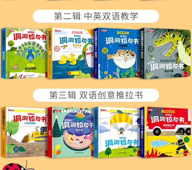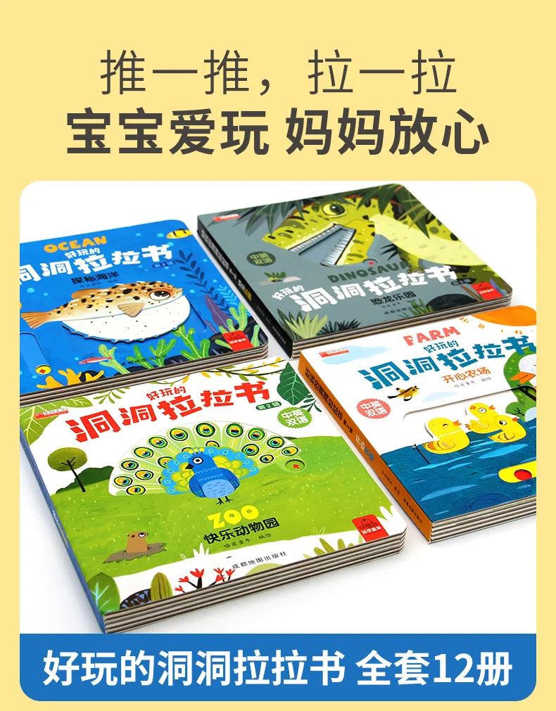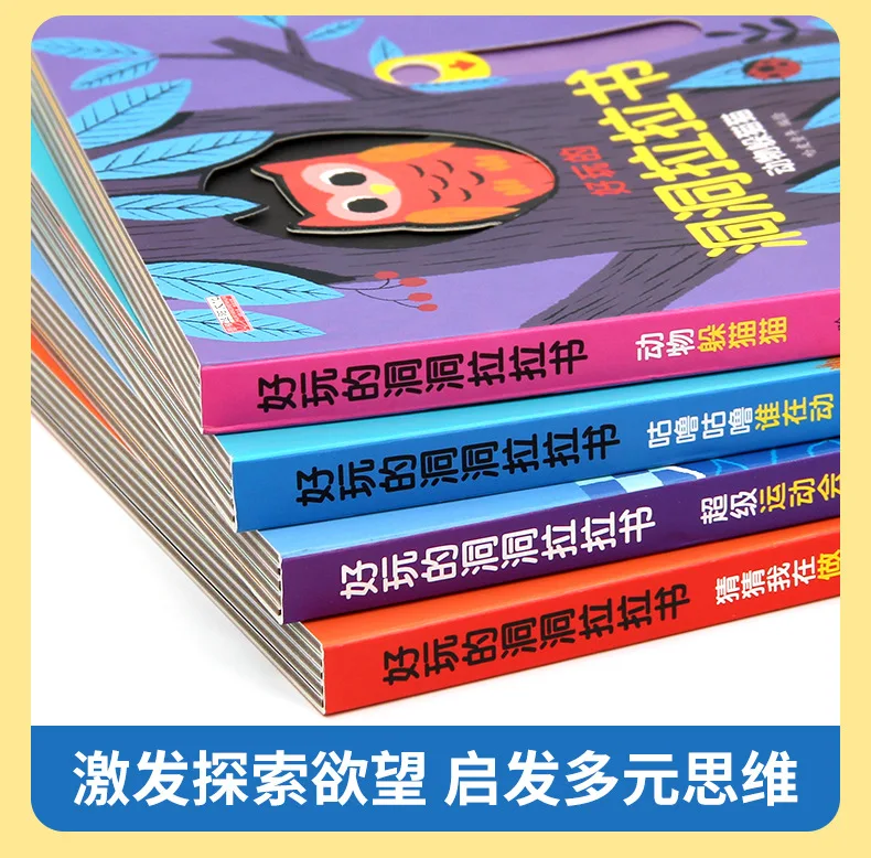 4 Books Hole and Hole Pull Book Children 3D Flip Book 3-8 Year Old Kid Toy Book Early Learning Enlightenment Bilingual Storybook