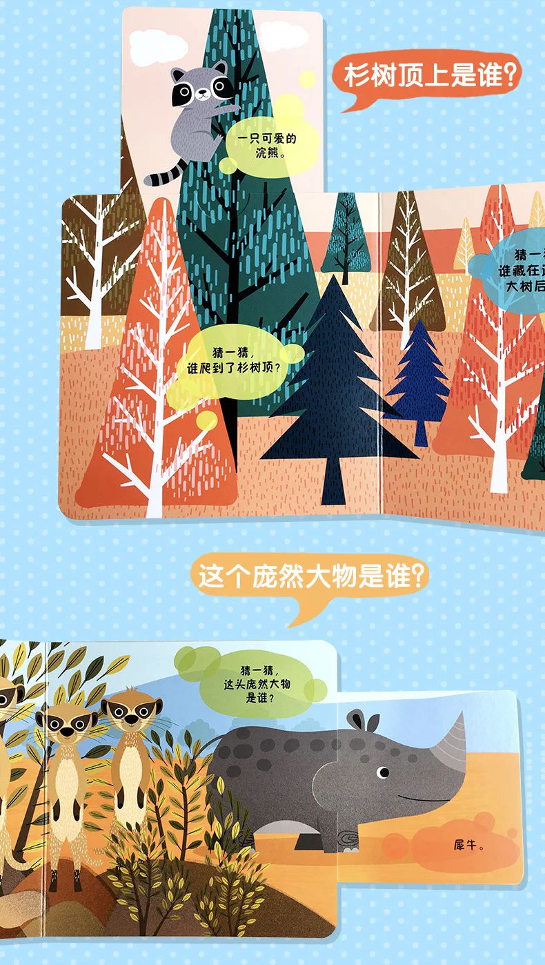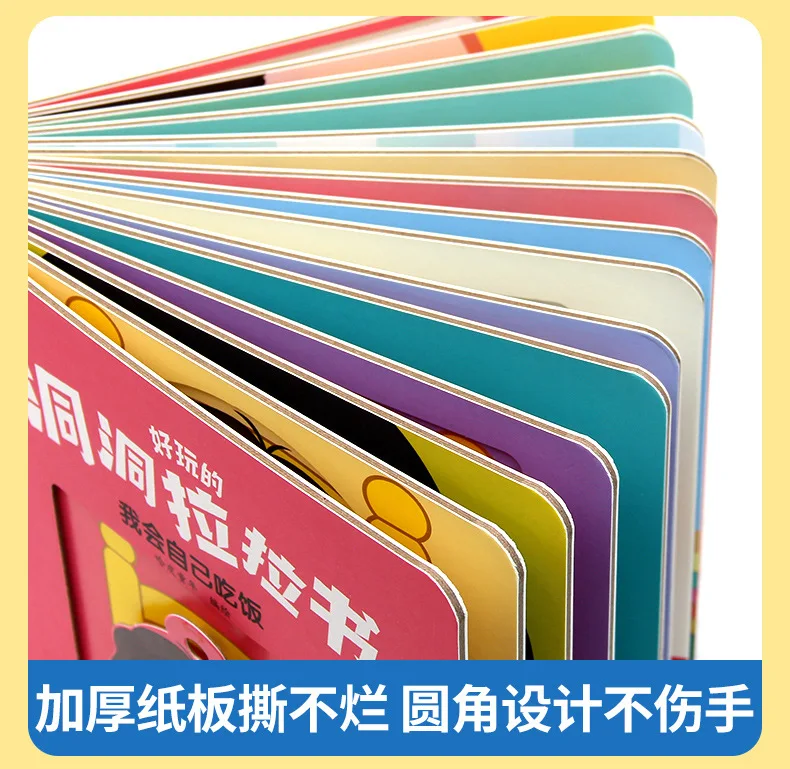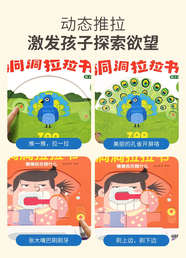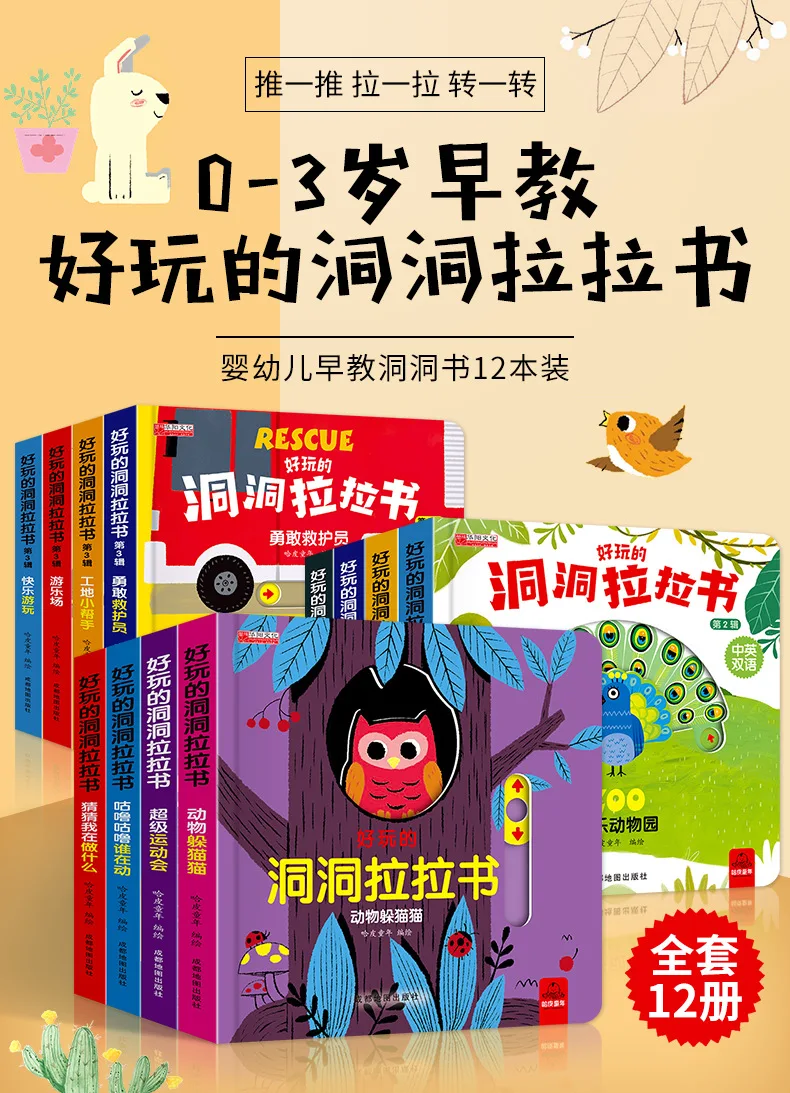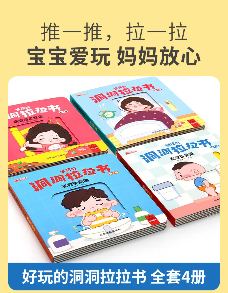 4 Books Hole and Hole Pull Book Children 3D Flip Book 3-8 Year Old Kid Toy Book Early Learning Enlightenment Bilingual Storybook
