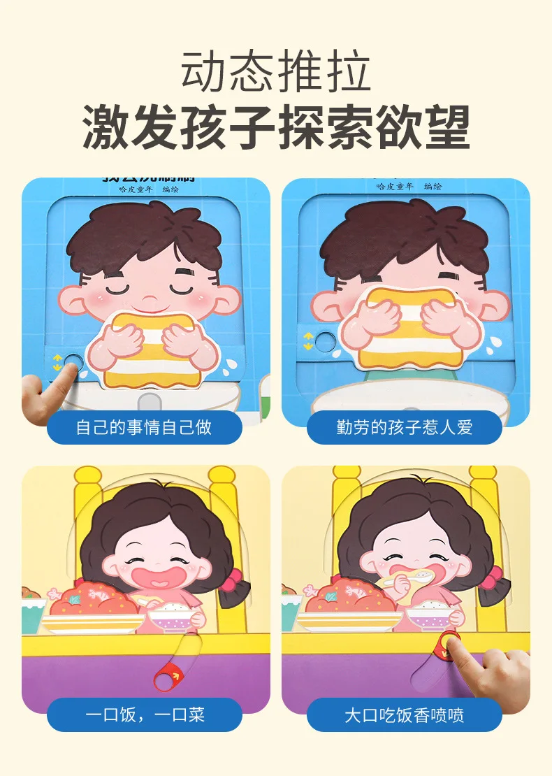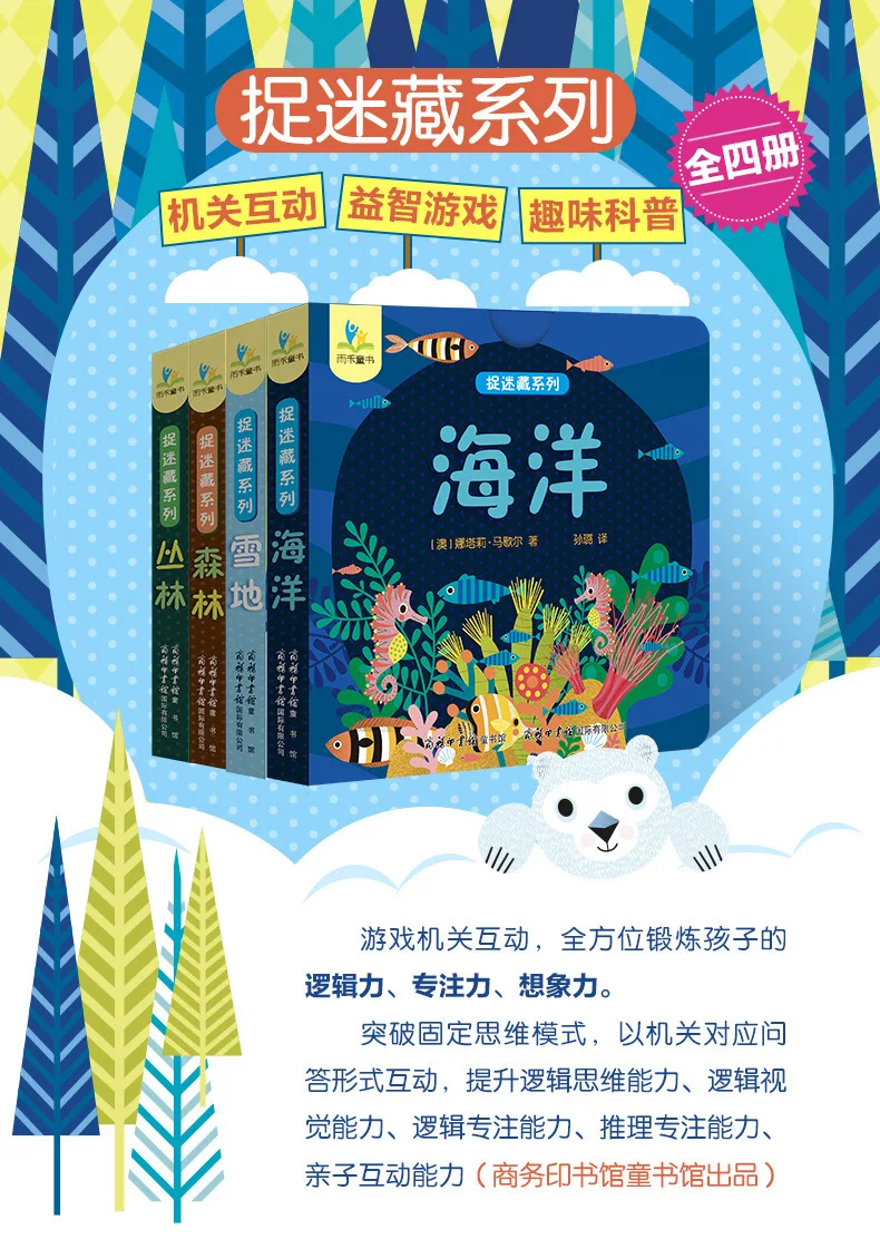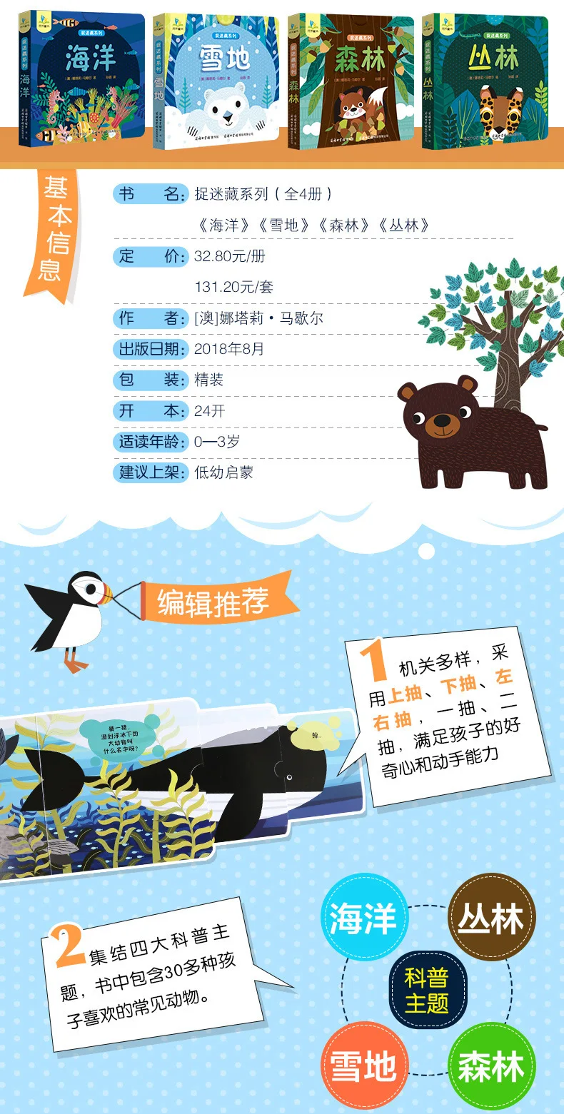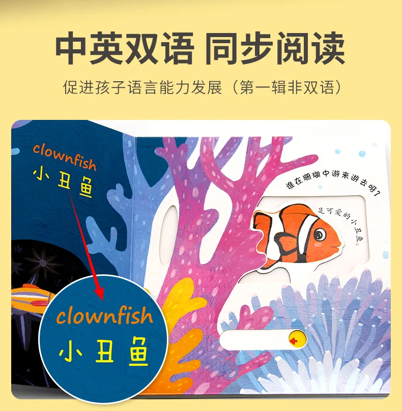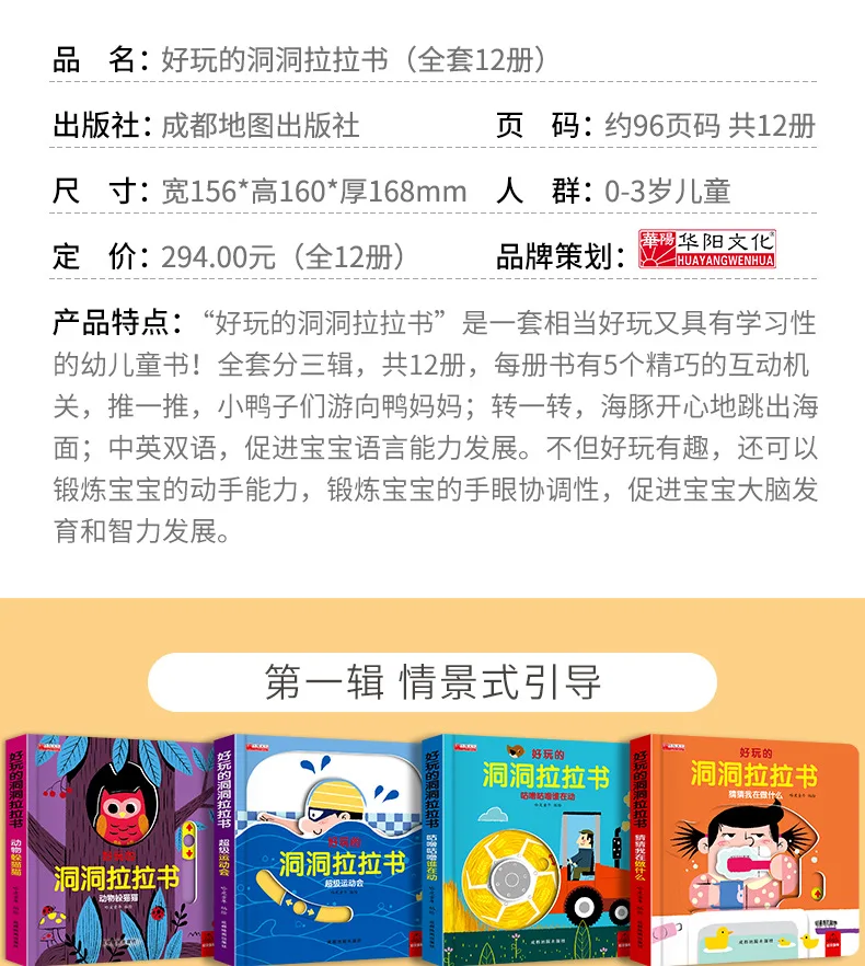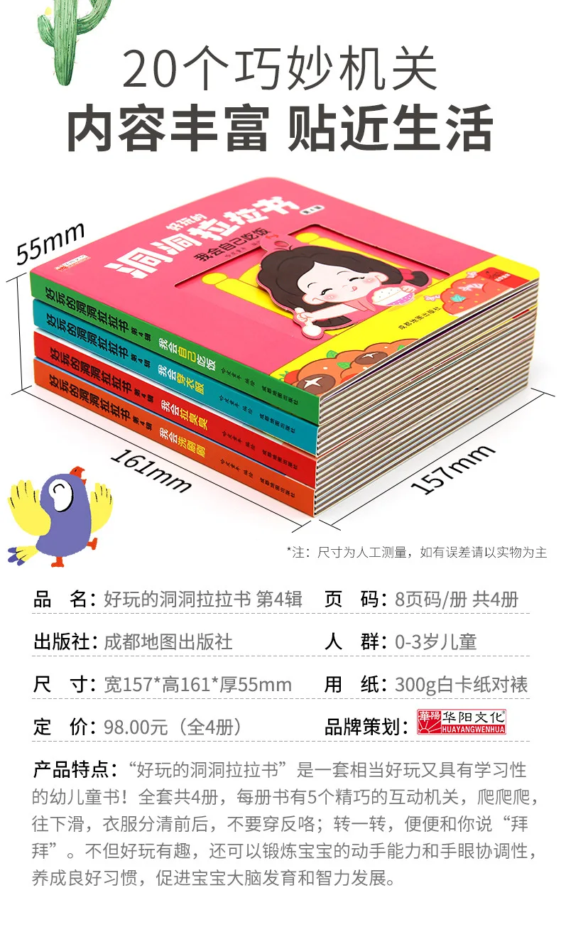4 Books Hole and Hole Pull Book Children 3D Flip Book 3-8 Year Old Kid Toy Book Early Learning Enlightenment Bilingual Storybook