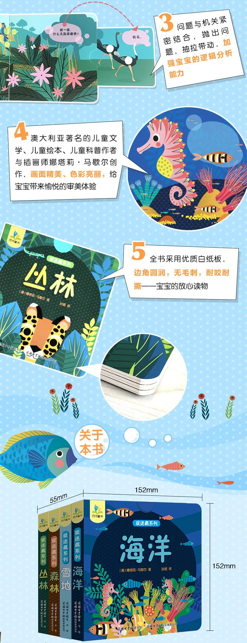 4 Books Hole and Hole Pull Book Children's 3D Flip Book 2-5 Year Old Baby Toy Book Early Learning Enlightenment Storybook