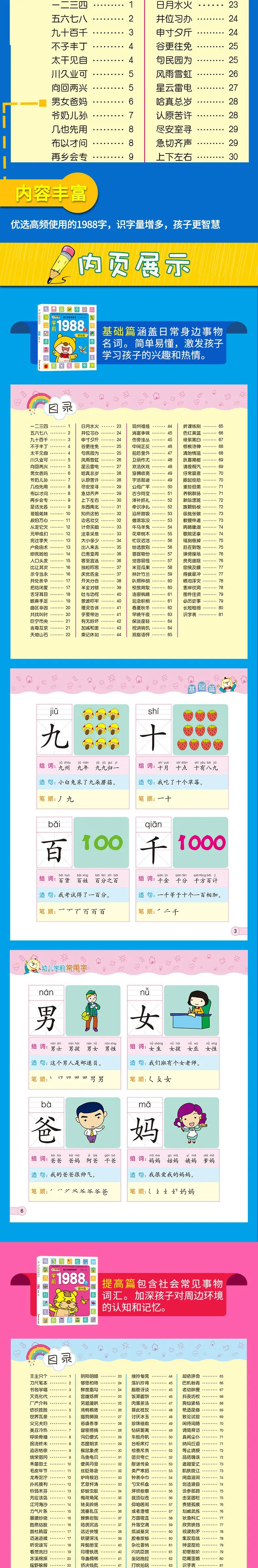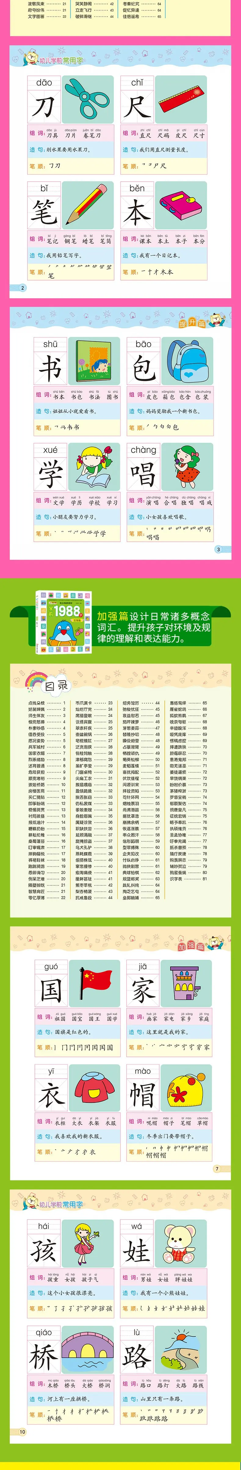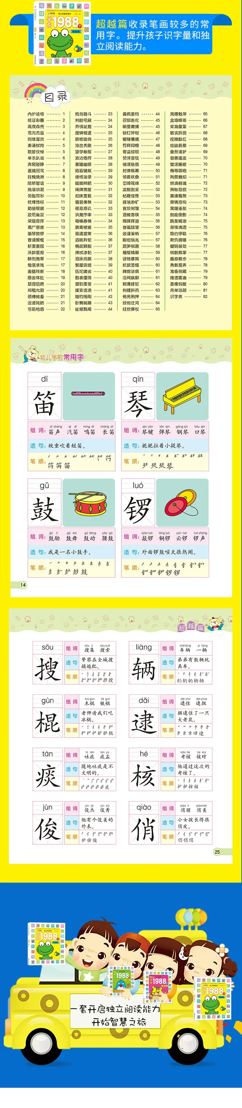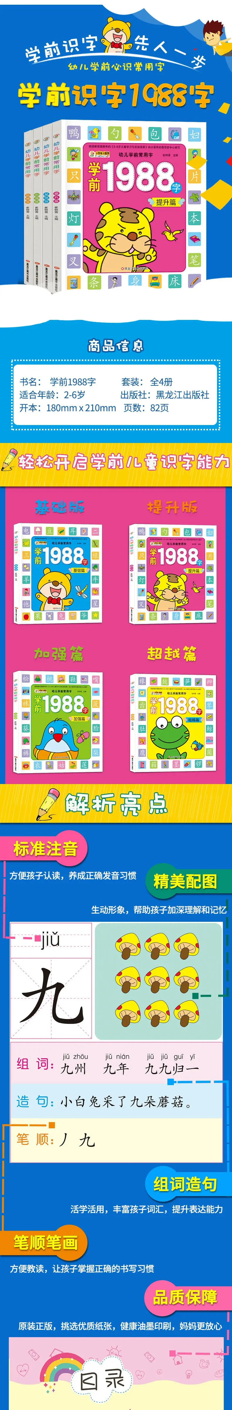 4pcs/set 1988 Words Books New Early Education Baby Kids Preschool Learning Chinese characters cards with picture and pinyin 0-6