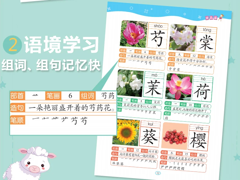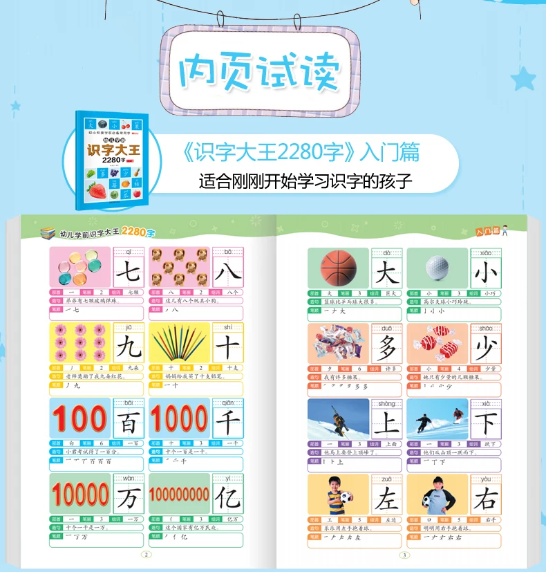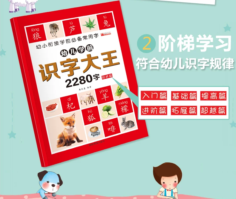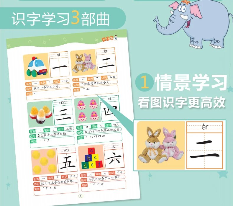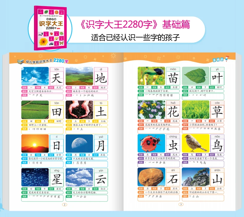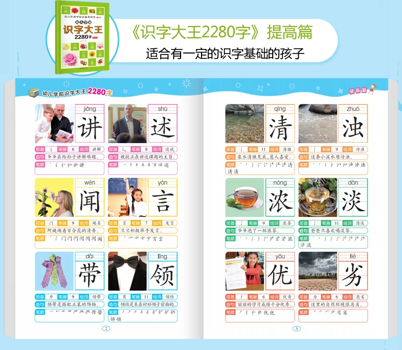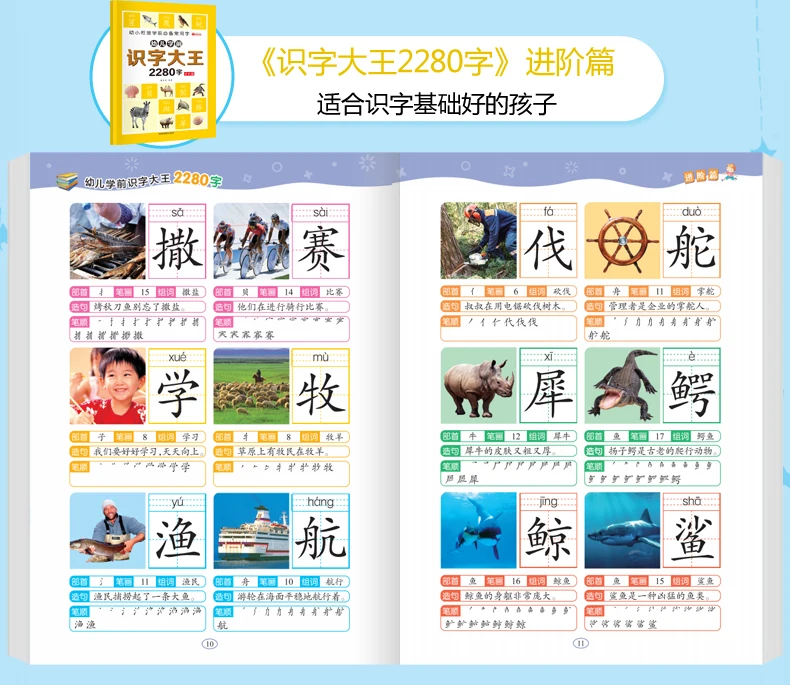 6Pcs/set 2280 Chinese Characters Learning Books Early Education for Preschool Kids Word Cards with Pictures & Pinyin Sentences