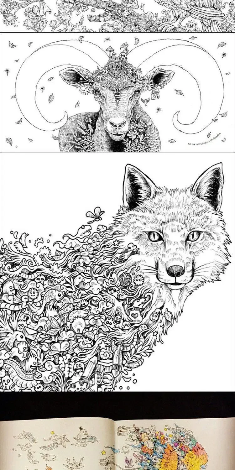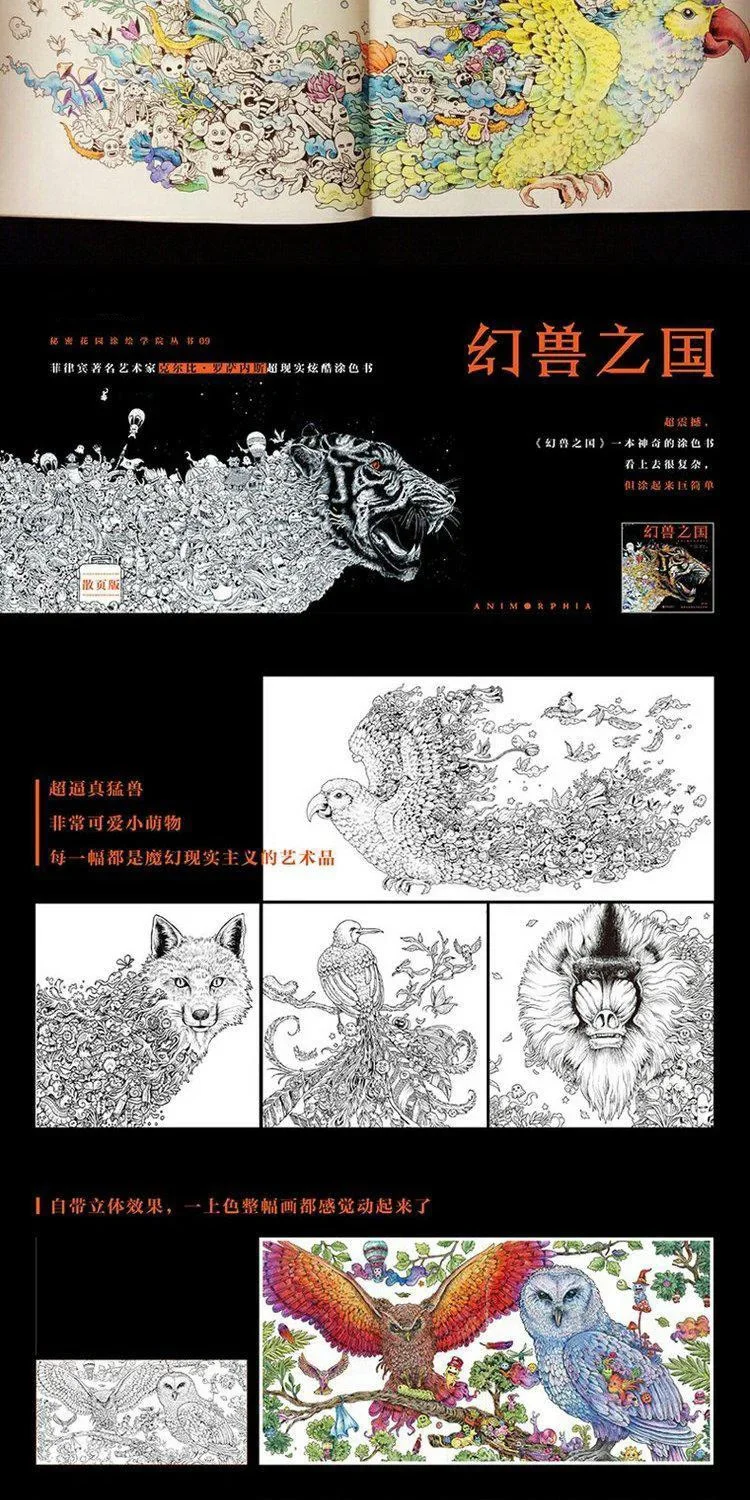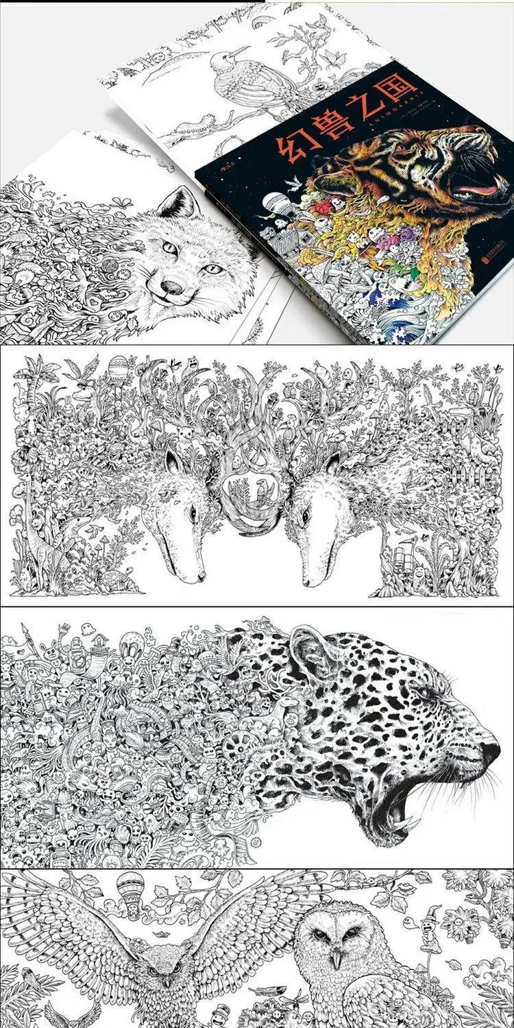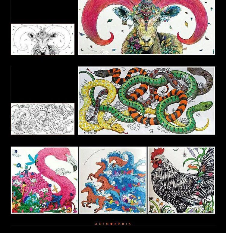 96 Pages Animorphia Coloring Book For Adults children Develop intelligence Relieve Stress Graffiti Painting Drawing books