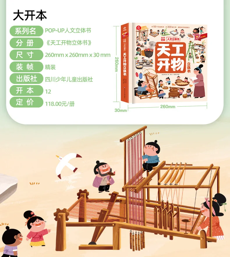 Children Kids Can Understand Tiangong Kaiwu 3D Book Flipping Popular Science Picture Books Children's Version 6-12 Years Old