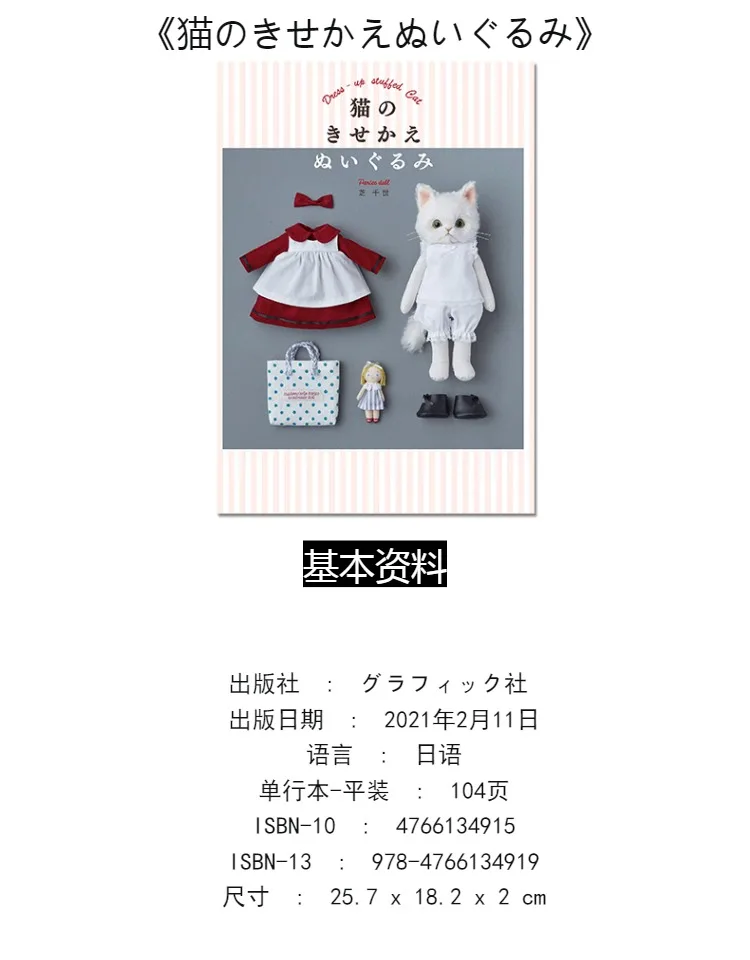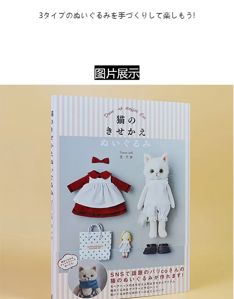 Dress up Stuffed Cat Craft Lesson Book Parico Handmade Doll Cat Doll Clothes Sewing Pattern Tutorial Book Japanese Version