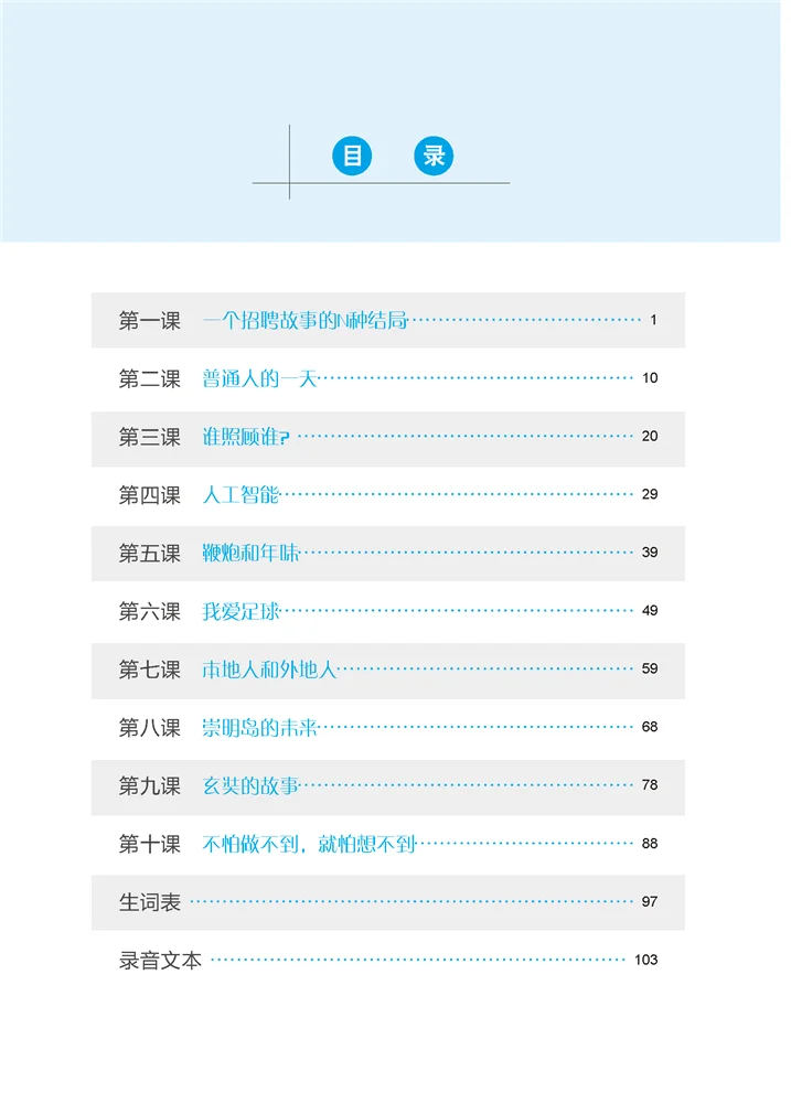 本教材为普及型汉语短期进修教材,主要面向来华短期进修教学项目,也适用于国内外其他各类普及型汉语进修教学项目。每册10课,每课3-4课时。