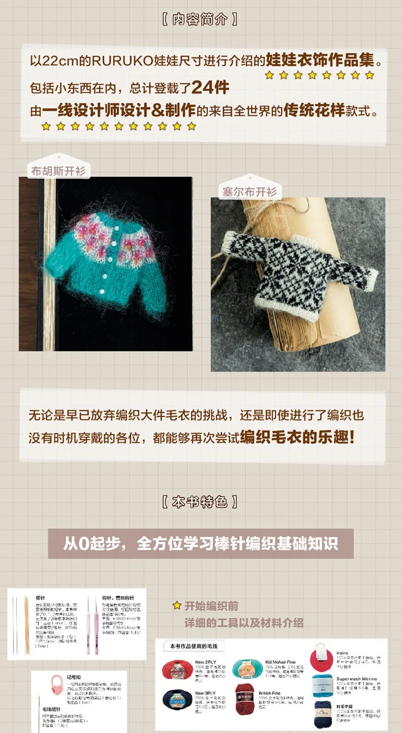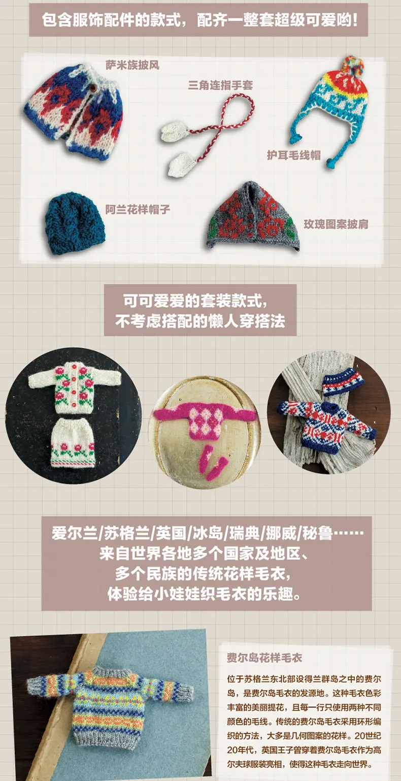 Miniature Knit Collection World Traditional Pattern Doll Clothing Knitting Book RURUKO 20cm Costume Sewing Craft Book