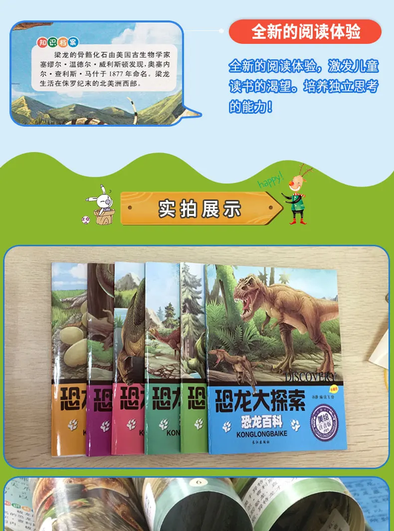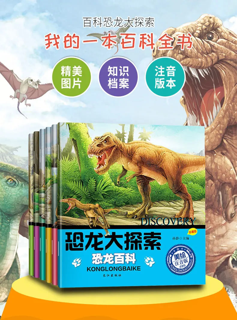 New 6pcs/set Dinosaur Encyclopedia Children's Story Book Phonetic version Picture books for children 3-6 years old libros
