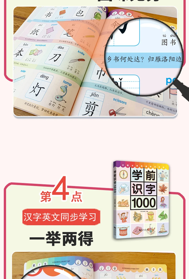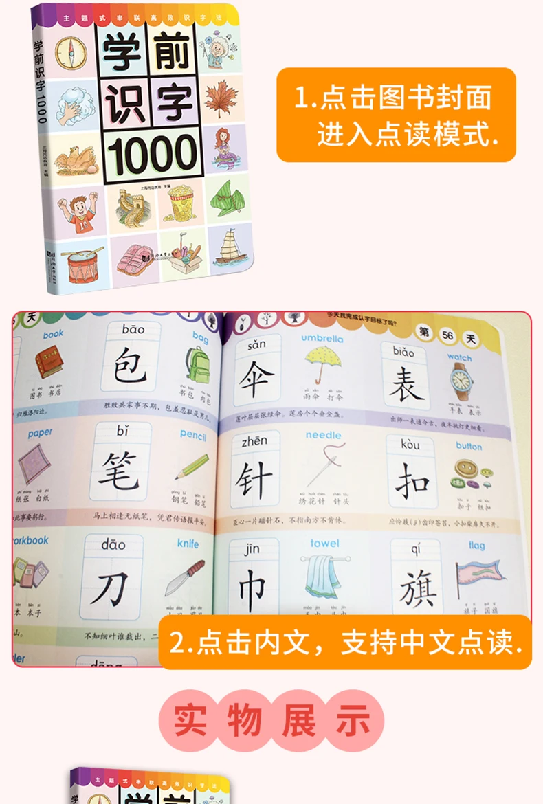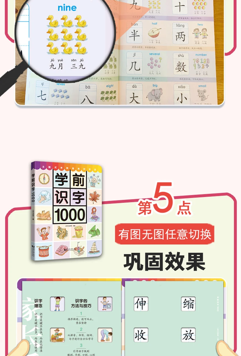 New Preschool Literacy 1000 Learn Chinese Characters Pinyin Enlightenment Book for Toddlers libros
