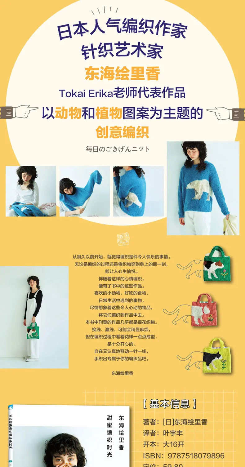 Tokai Erika Sweet Knitting Time Book Polar Bear Pullover,Scarf,Sweater, Animal And Plant Pattern Theme Creative Weaving Books