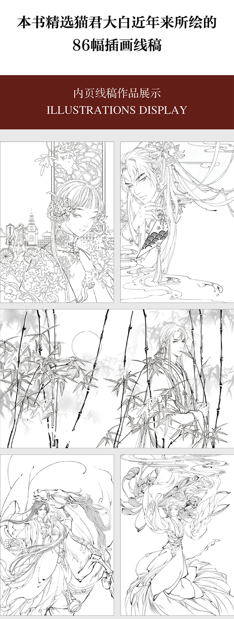 This book contains more than 80 pieces of his ancient style line drafts, with smooth lines, rich layers and exquisite details, which can be copied, painted and collected.